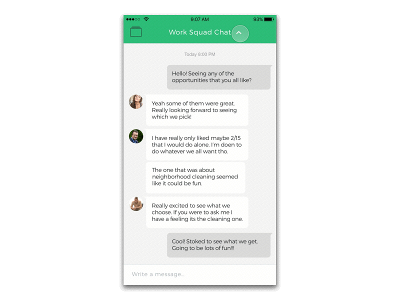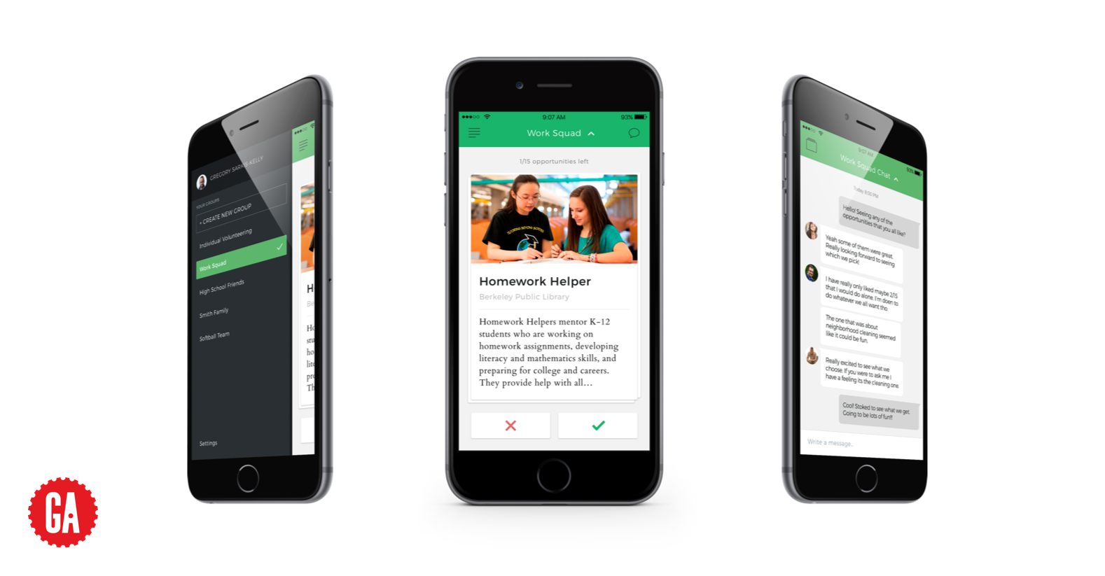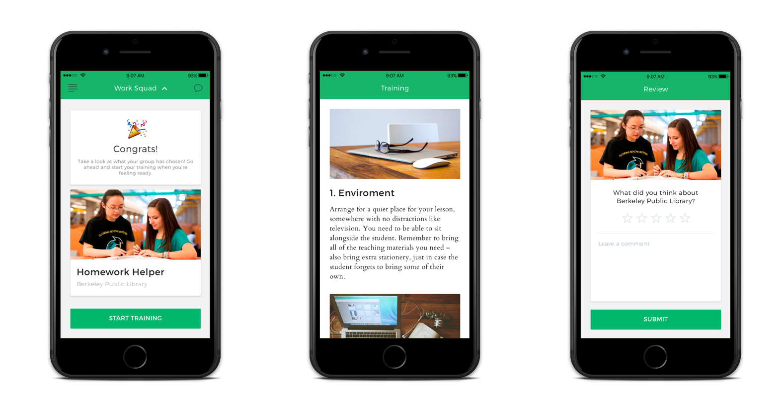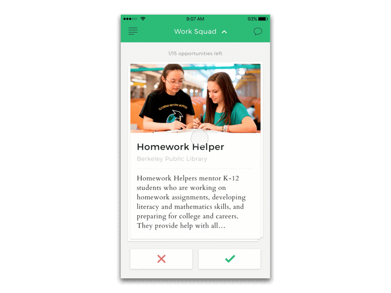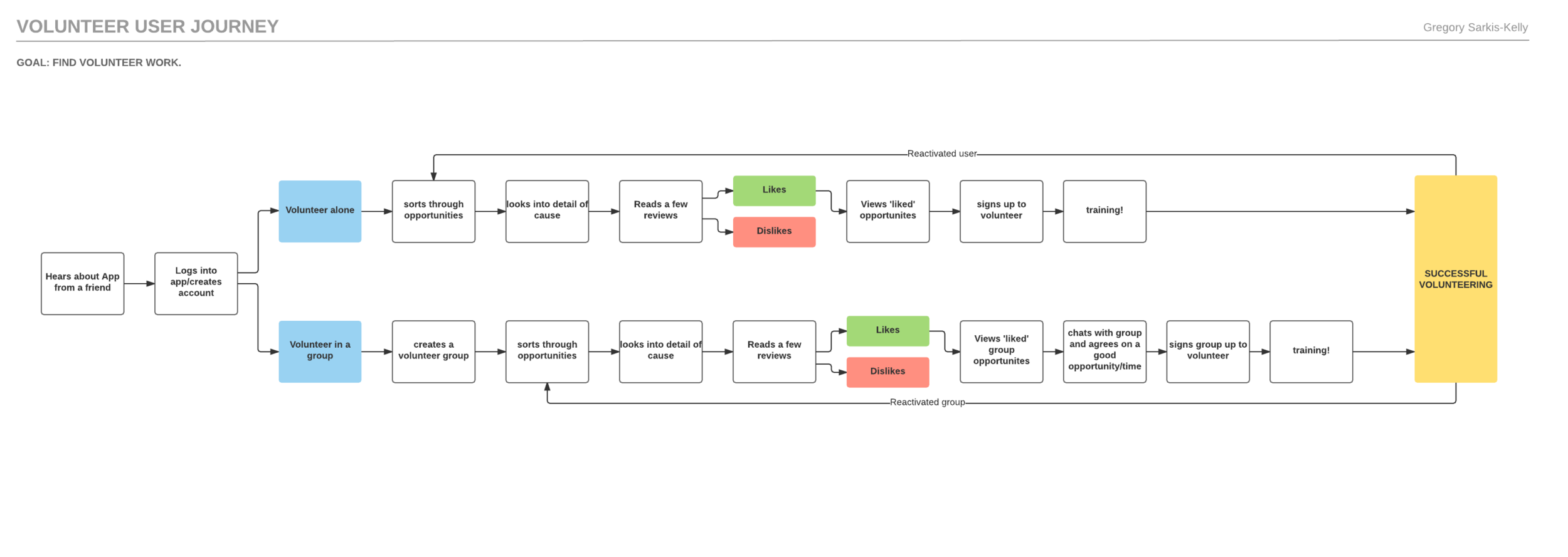 To begin the process of visual design, I collected screenshot of competitor apps to understand what visual trends already exist in this space. After researching all competitors from my Competitive analysis it seemed that light Greens and Blues were popular for community applications such as this. With this I chose a green as my main color with supporting colors of Green-Blue, Black, White, and Grays. As I wanted to keep the focus on the content and off the header’s iconography, I chose black line icons in the top bar to be visible while not being the focus of the screen or distracting the eye. I decided on typefaces of a Sans-Serif (Montserrat) for bold headings and subheadings, while using a Serif (Cardo) font for body type which is easier to read and softer on the eye. Finally in order to give volunteers a the best visual understanding of each volunteer opportunity, I made sure to use full bleed images during card sorting, detail views, and training modules. All of these elements were chosen with the user in mind, to create an atmosphere where they can feel comfort and trust.